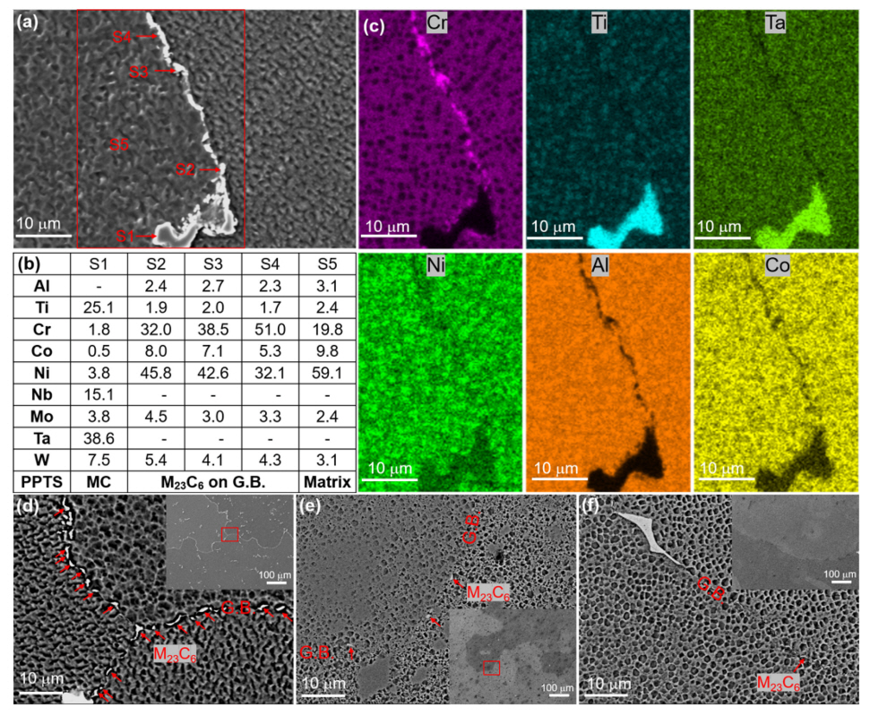 results, and (c) EDS mapping images of the Cr, Ti, Ta, Ni, Al and Co of the airfoil