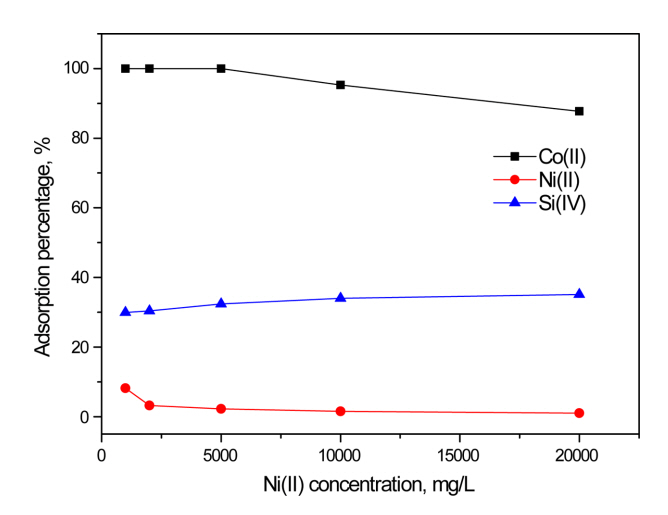 Effect of the concentration of Ni(II) on the selective loading of Co(II) into the