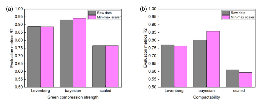 remove outliers and min-max scaler) (a) green compression strength prediction model,