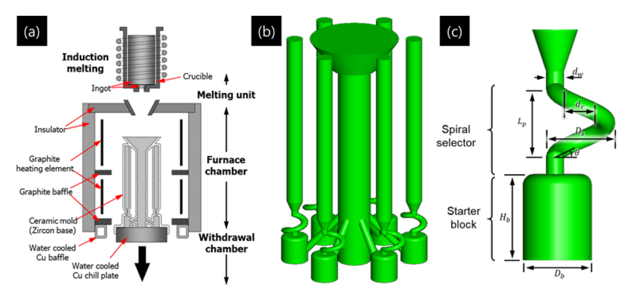 결정립 Selector에 의해 단결정이 선택되는 과정을 알아보기 위해 독일 ALD사의 ISP 0.5 DS/SC/LMC 진공 일방향 응고 장비를 이용하여