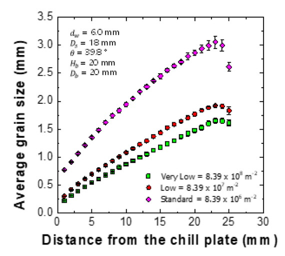 이루어지는 Cu-냉각판과 접하게 되며, 용탕의 안정화를 위해 위한 60초를 거치고 상용 인출속도인 4 mm/min 속도로 주형과 함께 인출이 이루어지면서