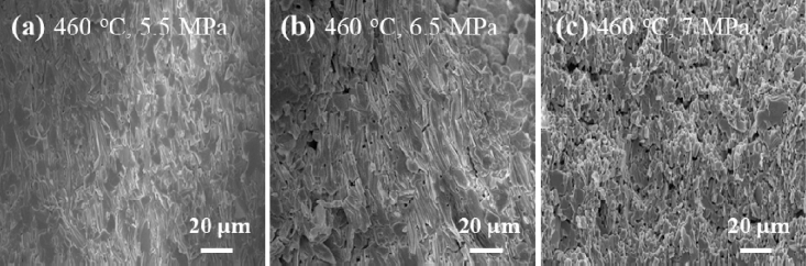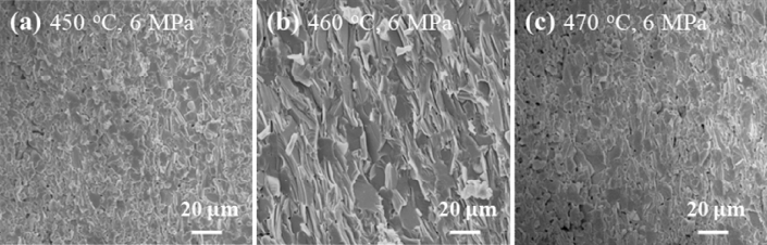 fabricated under pressure of 6 MPa at different temperatures; (a) 450 oC, (b) 460 oC, and (c) 470 oC.