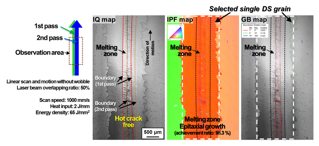 EBSD images of double-pass laser melting surface under linear scan for 247LC-DS specimen.