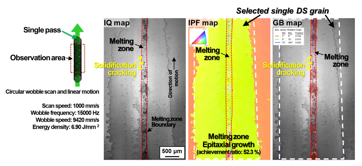 EBSD images of single-pass laser melting surface under circular wobble scan for 247LC-DS