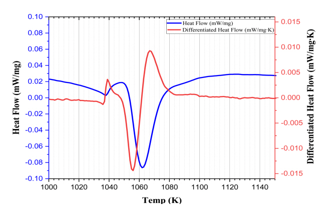 of the heat flow, or the start and end points of the endo peak in the DSC curve [15]. In order to show this gradient change, a differentiated heat flow is presented