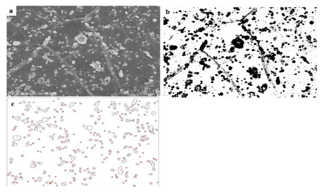 analysis techniques [16, 17, 18]. Fig 3 shows the image analysis process of ImageJ based on the SEM image. In the SEM image