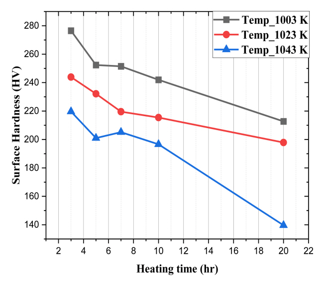 and 1043 K, and the heating time was set to 5 levels, 3, 5, 7, 10, and 20 hours. In