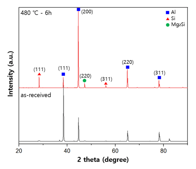 X선 회절법을 이용한 Williamson-Hall plot 방법, sin2ψ 방법과 cosα 방법에는 상기 제조된 A356.2 합금 샘플이 사용되었으며, as-built 샘플과 480 °C에서 6시간동안 열처리한 샘플의