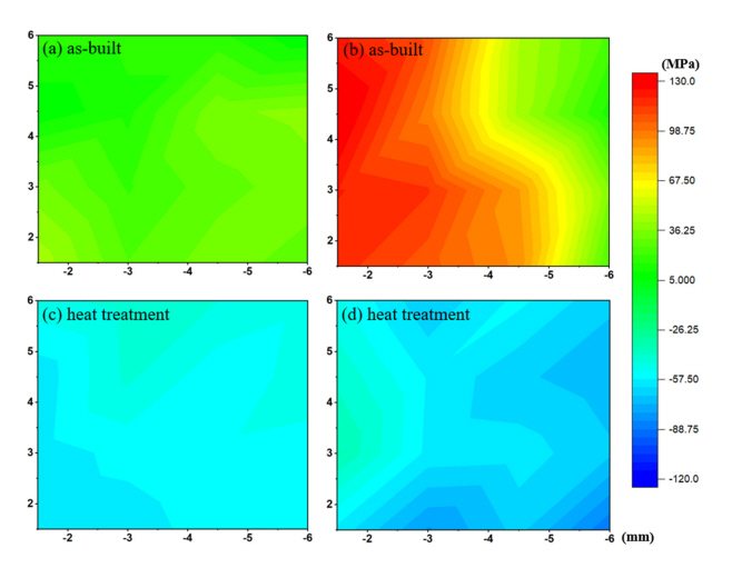 GPa(열처리 샘플)로 확인되었다. as-built 샘플과 비교하여 열처리 샘플의 인장 잔류응력 값은 31.4% 감소하였다.