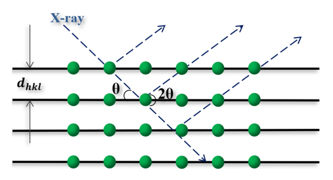 Schematic illustration of Bragg’s law (diffraction of X-ray in crystal).