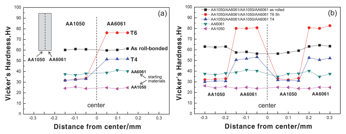 CRB. After T4 treatment, the hardness decreased largely in the AA1050 regions, compared