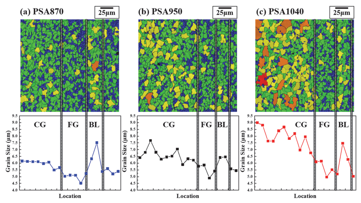 EBSD-Grain size maps showing grain size distribution near the bondline subjected to