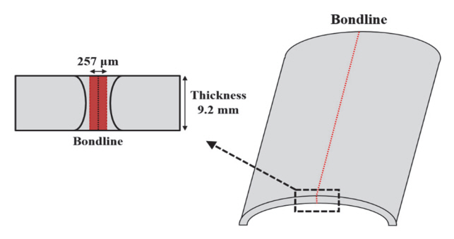 ํฌ๊ธฐ๋ก ์ธํด ASTM A370-17a [23] ๊ท๊ฒฉ์ ๋ฐ๋ผ 3/4 sub-size(10 mm ร 7.5 mm ร 55 mm) ์ํธ์ผ๋ก ์ฑ์ทจํ์ฌ ์ํ์ ์งํํ์๋ค. ์ํํธ์ Vnotch๋ bondline