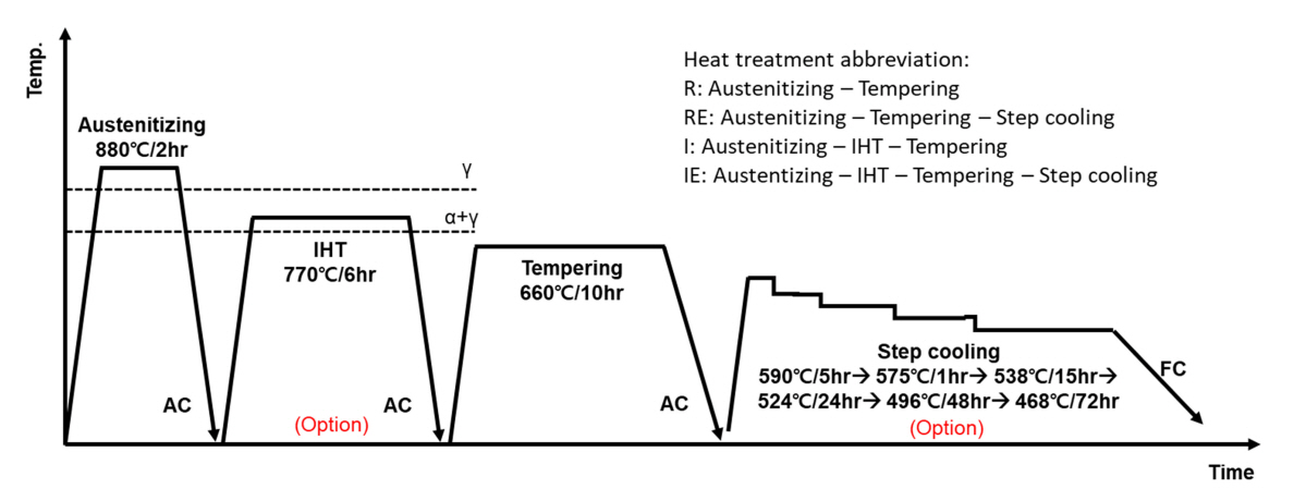 기존 SA508 Gr.1A, Gr.3 강의 이상영역열처리인 720°C~725°C 보다는 다소 높은 온도에서 이상영역열처리를 수행하였다 [26, 34].