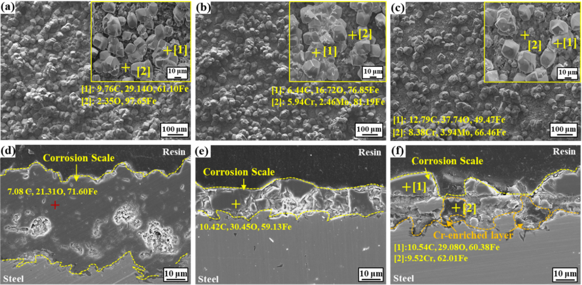 CO2 corrosion, steel, Cr, Mo, FeCO3, Cr(OH)3, Mo(OH)3