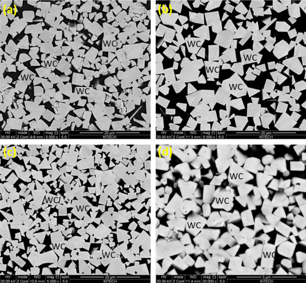 electrons, BSE) ์ด๋ฏธ์ง๋ก ์ป์ด์ง ๋ฏธ์ธ ์กฐ์ง ์ฌ์ง์์ WC ์