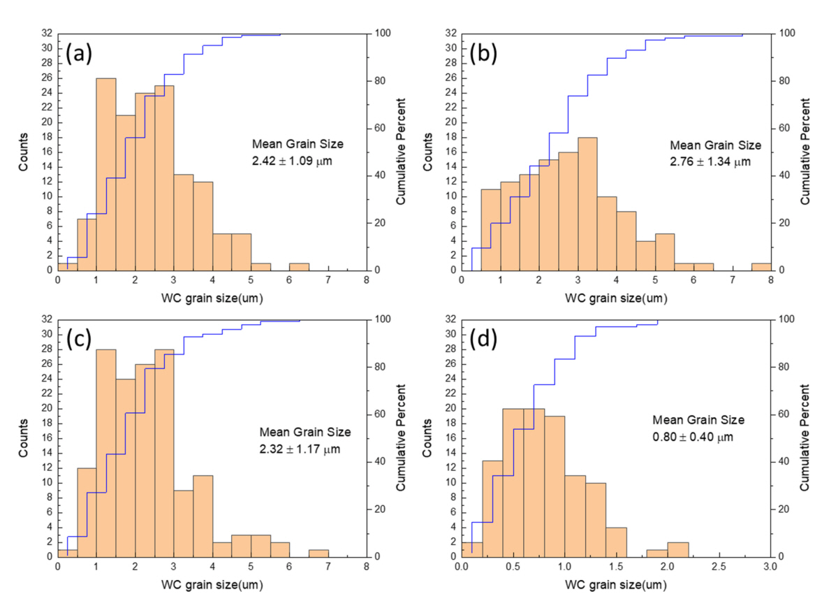 ๋ ๋ถํฌ์์ ๋ณด๋ฉด 0.5 um ํฌ๊ธฐ ์ดํ์ ๋ฏธ์ธ WC ์