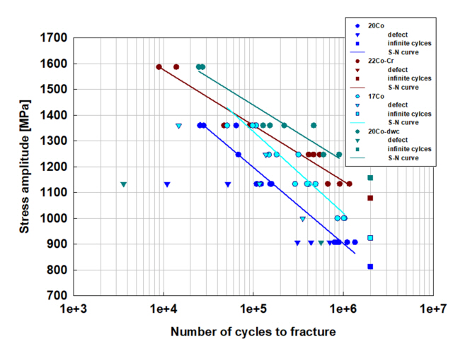 ์์ FCC Co์์ด ๊ด์ฐฐ๋๋ 20Co-dwc ํฉ๊ธ์ ํผ๋ก ํน์ฑ์ ๊ฐ์ฅ ์ฐ์ํ ๊ฒ์ผ๋ก ๋ํ๋ฌ๋ค. ์ด ํฉ๊ธ์์๋ WC ์