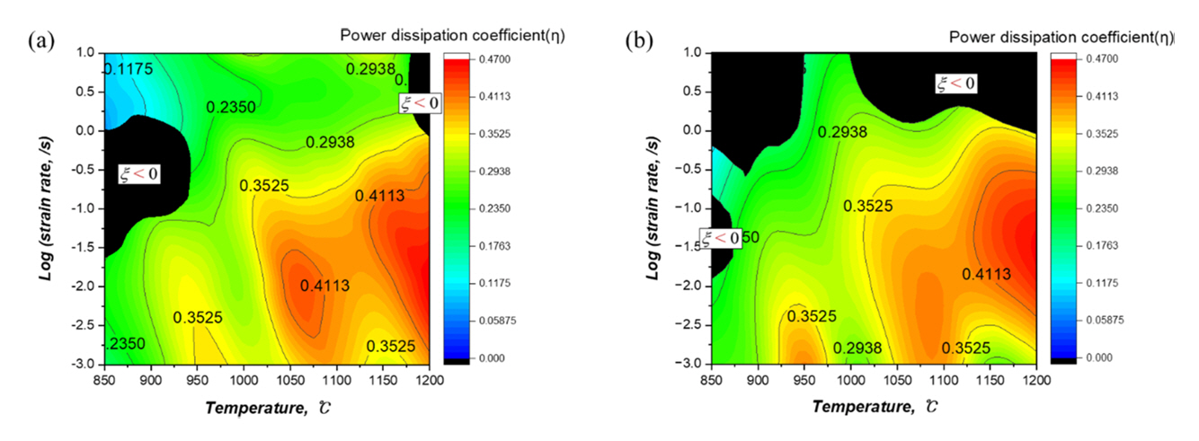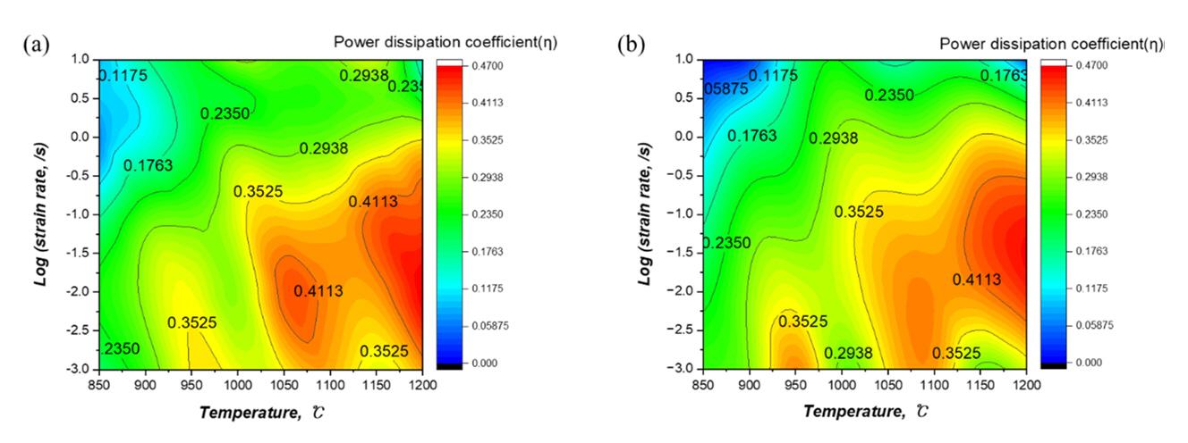 위해 연속적인 변형속도 민감 지수 (Strain-rate sensitivity, m)를 기반으로 하는 동적 재료 모델을 활용하여 파워 분산 효율을