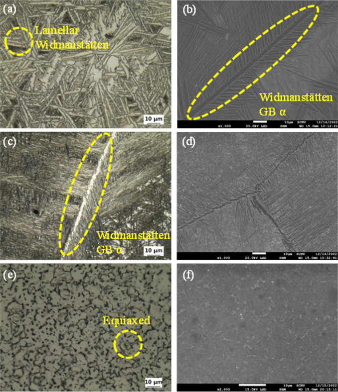 tten 조직이 나타났으며, 연성 향상에 도움을 주는 Widmanst tten Grain Boundary α (WGBα)상이 관찰되었다. 상 분율을