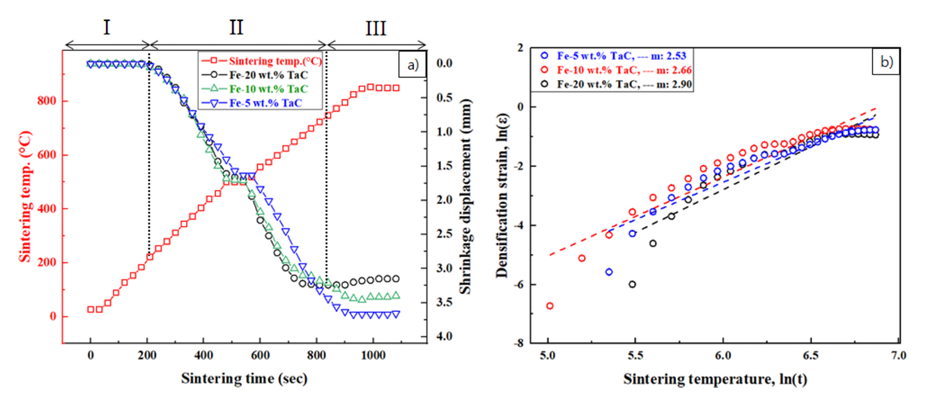 ๋ฃ๊ฐ ๋์๋ค. Fe-TaC ๋ณตํฉ์ฒด๋ ์์ถ ๋ณ์์ ์์ด 3๋จ๊ณ๋ก