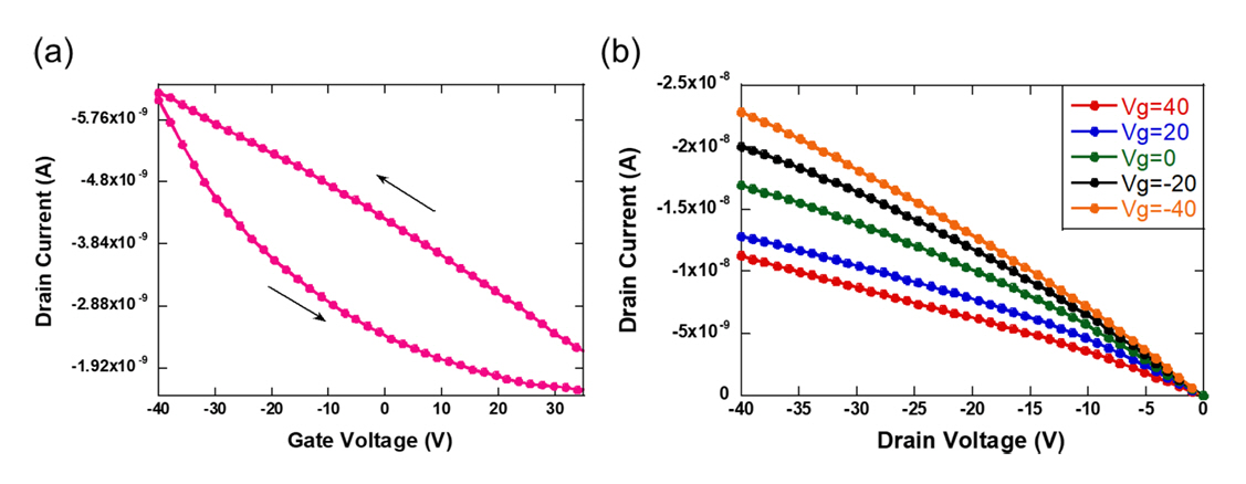 (FETs). Transfer characteristic curves indicated that P3HT NPs constitute p-channel FETs, with the gate voltage magnitude inversely related to the drain voltage.