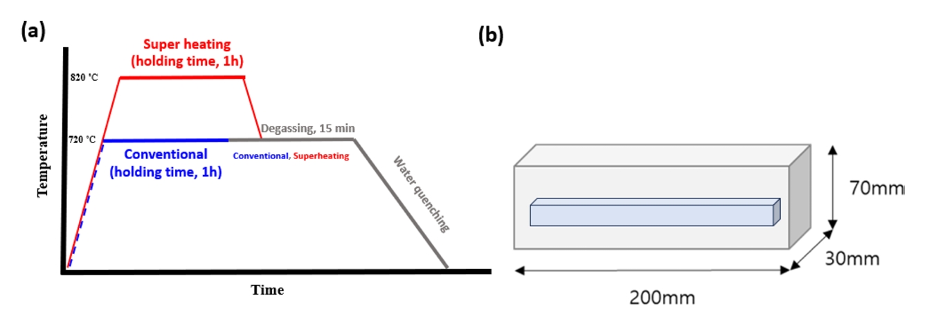 (a) The schematic diagram of superheating treatment process, and (b) the dimension
