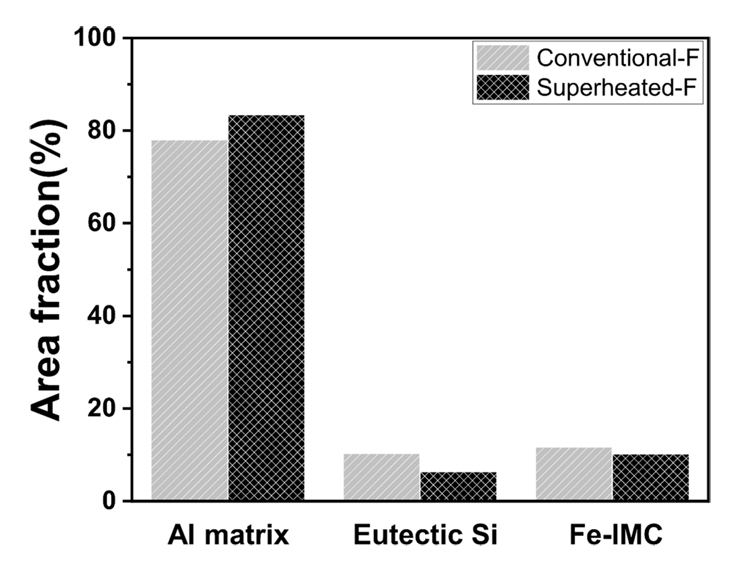 ratio of eutectic Si in the Conventional-F and Superheated-F alloys.