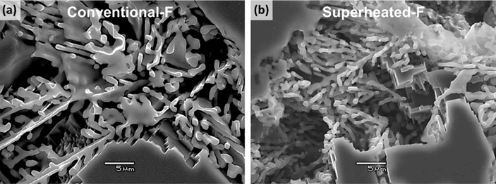 Superheated-F의 경우 Conventional-F 대비 공정 Si 크기가 더 미세한 것을 다시 한번 명확하게 확인할 수 있었다. 관찰된 공정