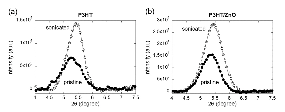 in Fig 5. In these GIXD patterns, the peaks corresponding to the sonicated P3HT are not only
