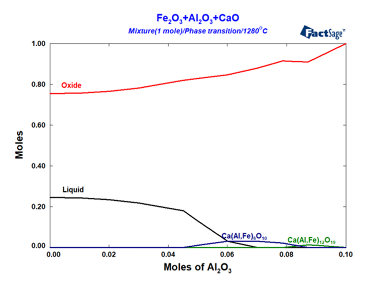 the value was 0.46, indicating little assimilation with calcium ferrite. This generally
