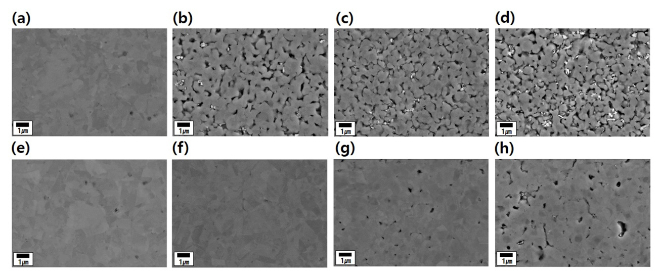 °C 범위에서 5, 8, 10 °C/분의 가열 속도로 측정되었으며 97% N2-3 % H2 의 환원 분위기에서 수행되었다. 공극률 분석은 FE-SEM으로 얻은 이미지를 Image J 소프트웨어를 통해 이미지 변환하여 측정하였으며, 결정립