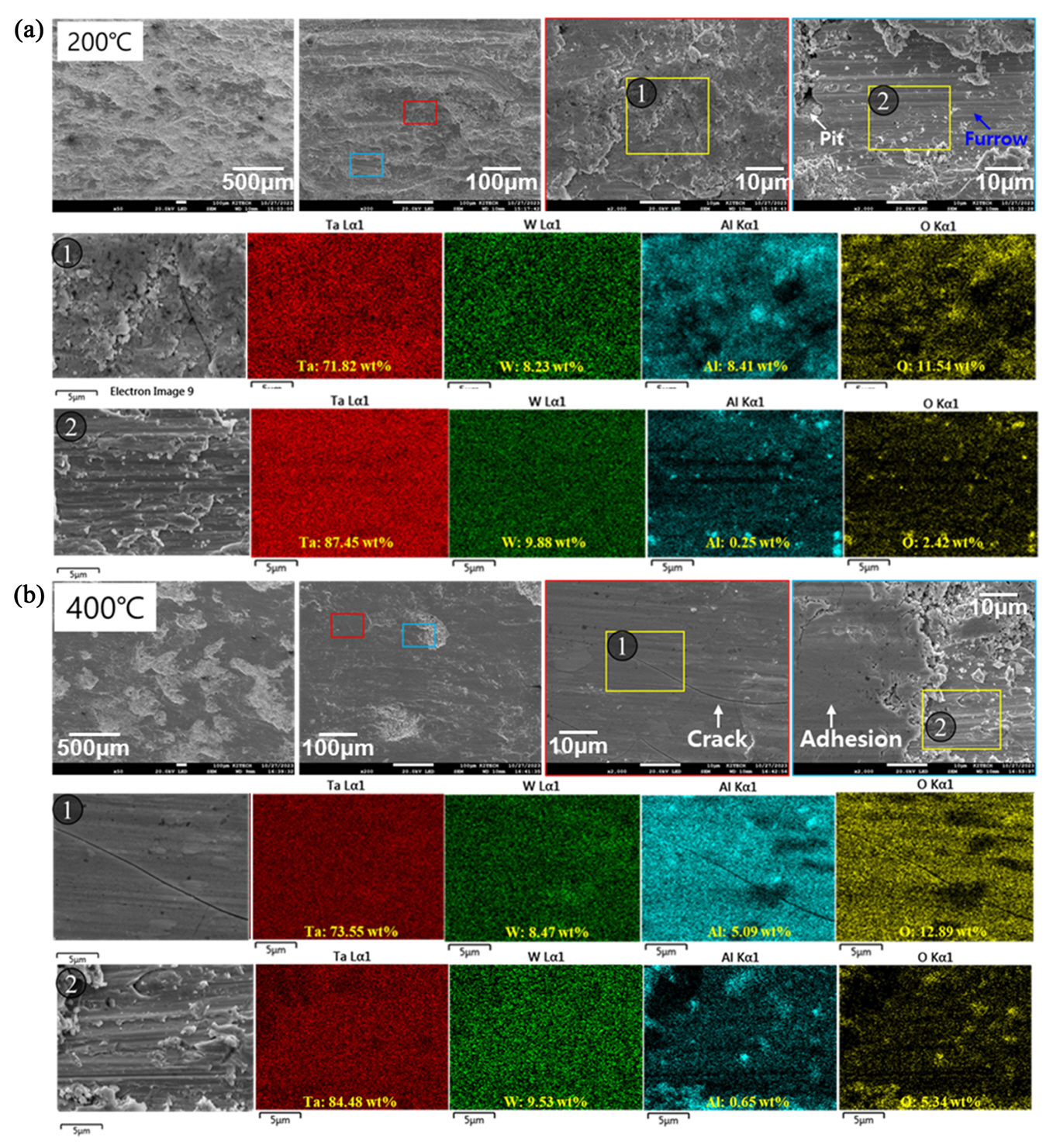 (200°C, 400°C, 600°C, and 700°C) wear tests of Ta-10W alloy.