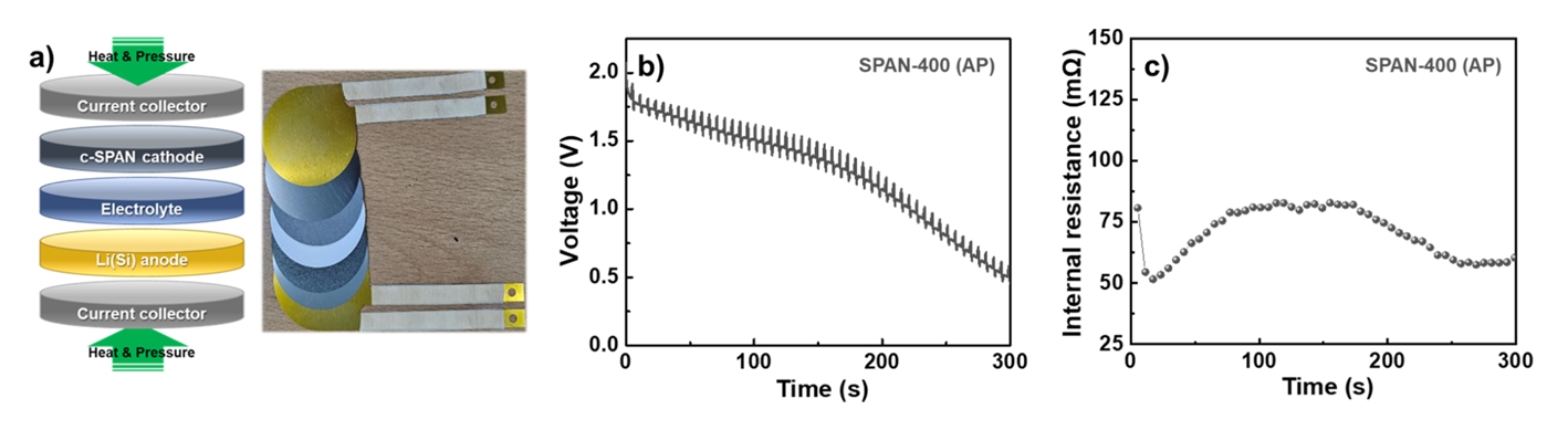 (a) Schematic and photograph of the thermal battery fabricated with SPAN-400(AP).