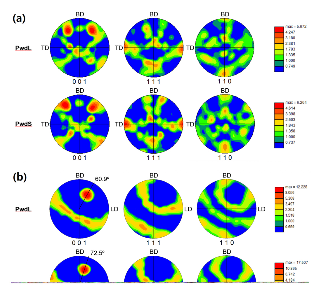 PwdS에서는 3.40으로 증가하는 경향을 보였다. 이는 PLD의 감소에 따라 BD와 LD 방향에서 effective grain size가 모두 증가했음을