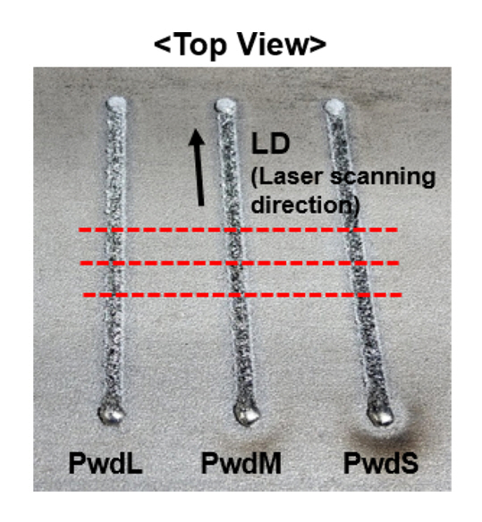 PLD가 작은 PwdS에서는 깊고 넓은 melt-pool이 형성되며 비드와 melt-pool이 유사한 너비를 보였고, 비드와 substrate 사이에서