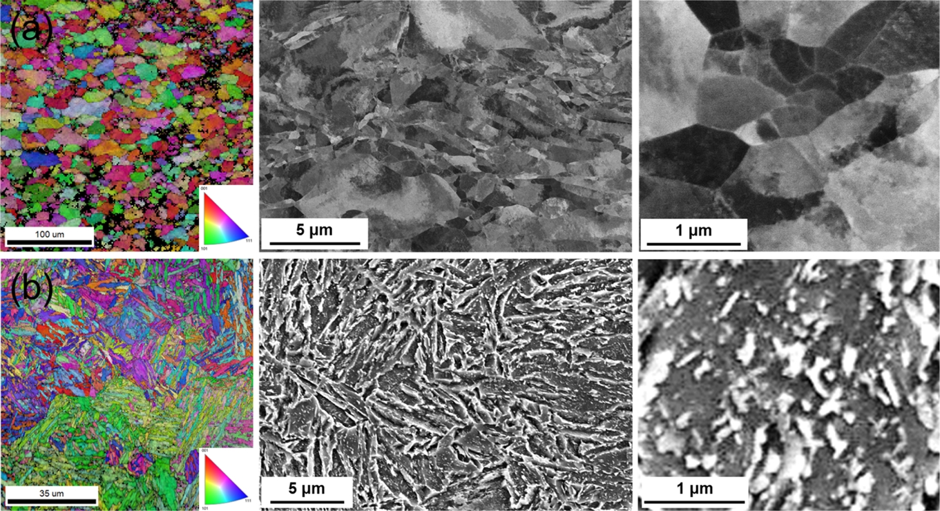 성형에 의한 변형 조직이 후열처리를 통하여 충분히 재결정 또는 회복되지 않았음을 나타낸다. 비교재인 AISI4340 소재는 전형적인 템퍼드 마르텐사이트