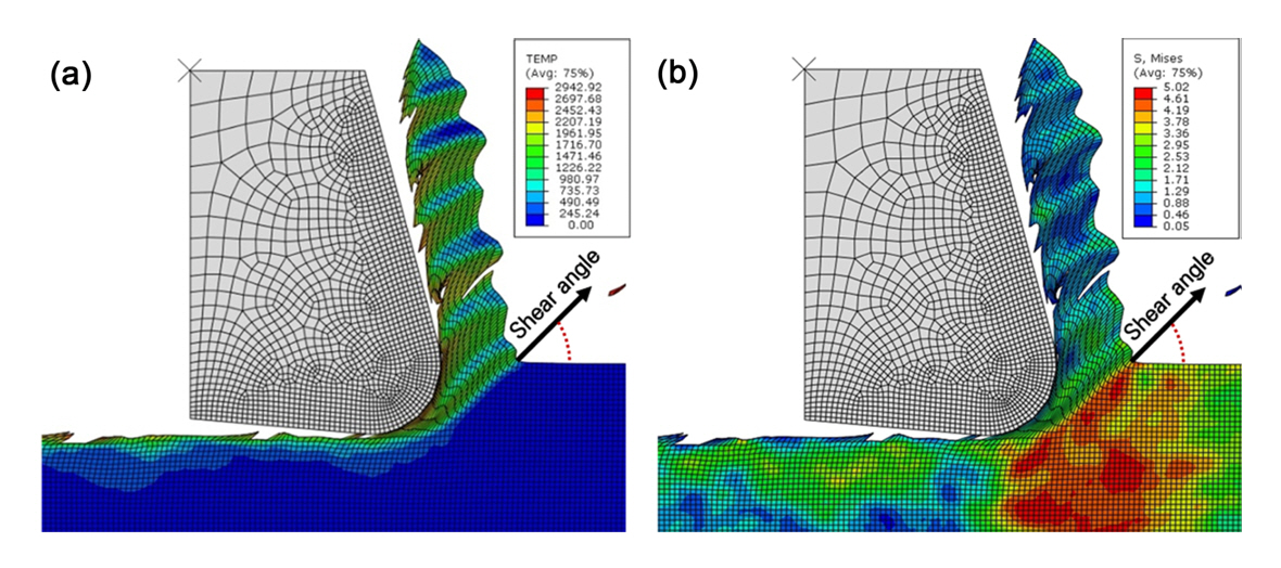 툴 각도가 결정되는 경우, 가공 속도가 증가함에 따라서 전단 변형 방향에는 큰 영향이 없는 것을 예측할 수 있다. 하지만 절삭 깊이는 전단 변형 방향을