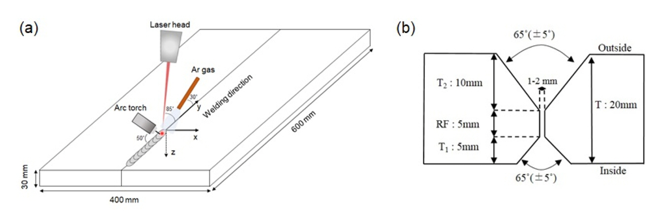the results of the LAHW specimens and conventional SAWs are summarized in Table 3. The arc and laser zones of the LAHWs exhibited a YS of 431 and 449 MPa, a TS of