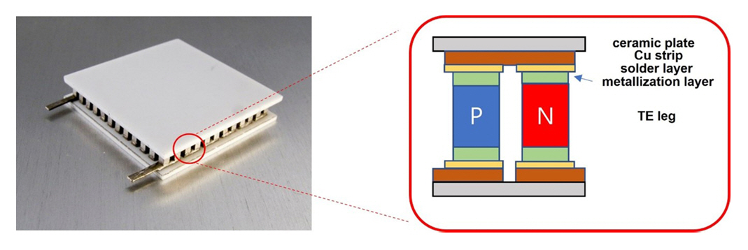 Cross-sectional structure of typical low-temperature thermoelectric modules