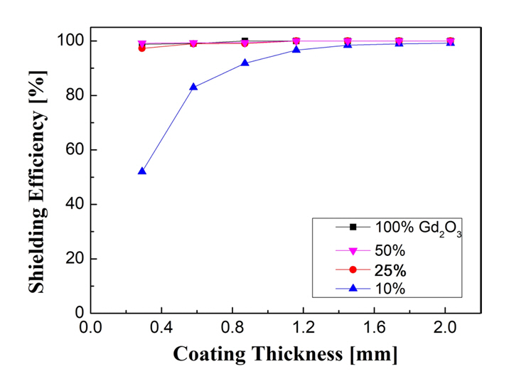 개발되었다. Burke은 방사선 차폐 효율을 높이기 위하여 중성자 감쇠/흡수 매체 역할을 하는 산화가돌리늄(Gd2O3) 도료를 제조하였다. 155Gd와 157Gd의 중성자 흡수 과정은 155Gd(n, γ)와 157Gd(n, γ) 반응을 통하여 구현되었다[10].
