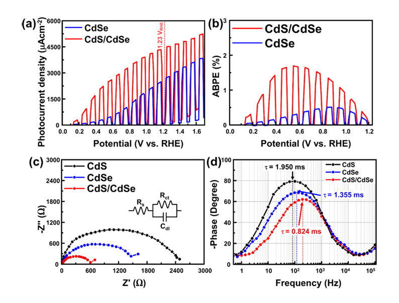 해준다. CdS/CdSe 이종접합 광양극의 원활해진 전하 흐름을 통해 PEC 성능이 향상될 뿐만 아니라, 전하의 축적을 해소하고 여러 부반응을 억제하며