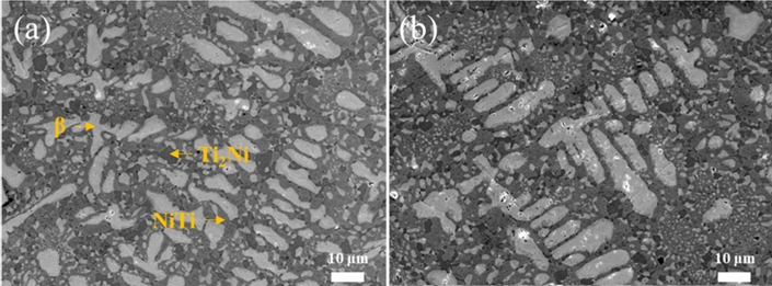 Nb-NiTi 의사이원계(pseudobinary) 상태도를 보면[2,3] NiTi상과 Nb상이 응고시 공정 반응에 의해 형성되기 때문에 NiTi상과 β Nb상으로 구성된 이상 구조(two-phase structure)를