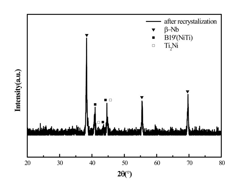 마르텐사이트 NiTi상과 β Nb상이 주된 상으로 구성되어 있었다.