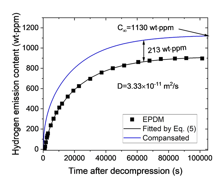 흡착 모델을 따른다. 카본 블랙이 함유된 EPDM 복합체에서의 수소 흡수는 고분자 네트워크에 의한 흡수와 카본 블랙 충전제에 의한 흡착의 기여를 받는다.