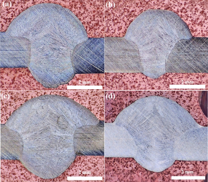 AWS D1.6 규격[13]에 따르면, 용접부는 대칭적인 형상을 갖는 것이 바람직하며, 이 기준에 가장 부합하는 조건은 150 A–70 cm/min임을 확인할 수 있었다.