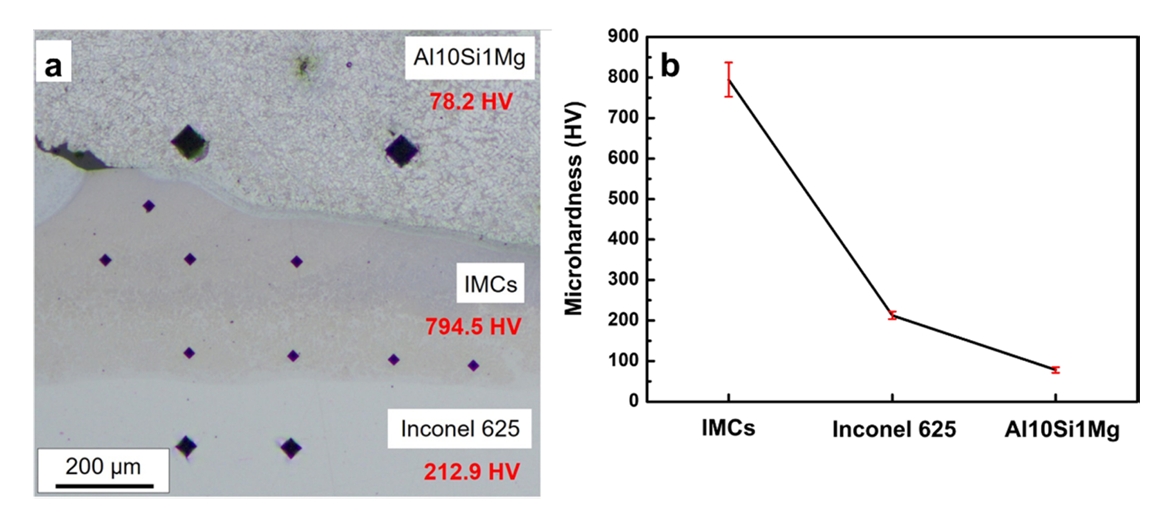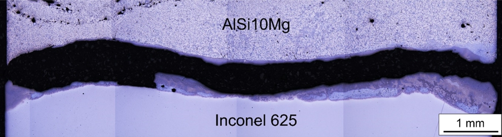 AlSi10Mg and Inconel 625. The microstructure of the interface was observed to analyze