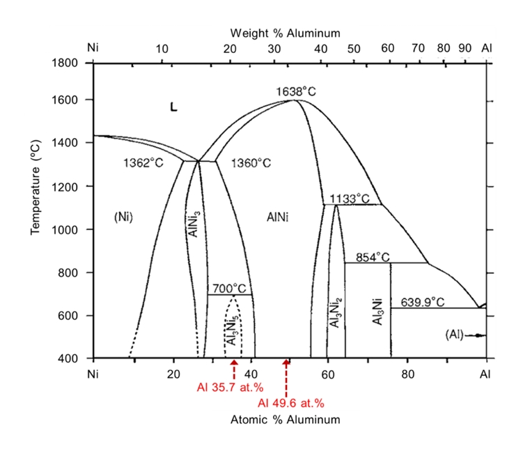 A previous study reported that the diffusion rate of nickel in Ni-Al IMCs is extremely