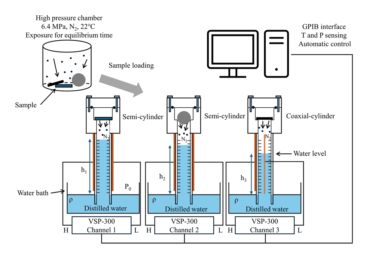 After the sample was fully saturated with gas, the valve was opened to release the