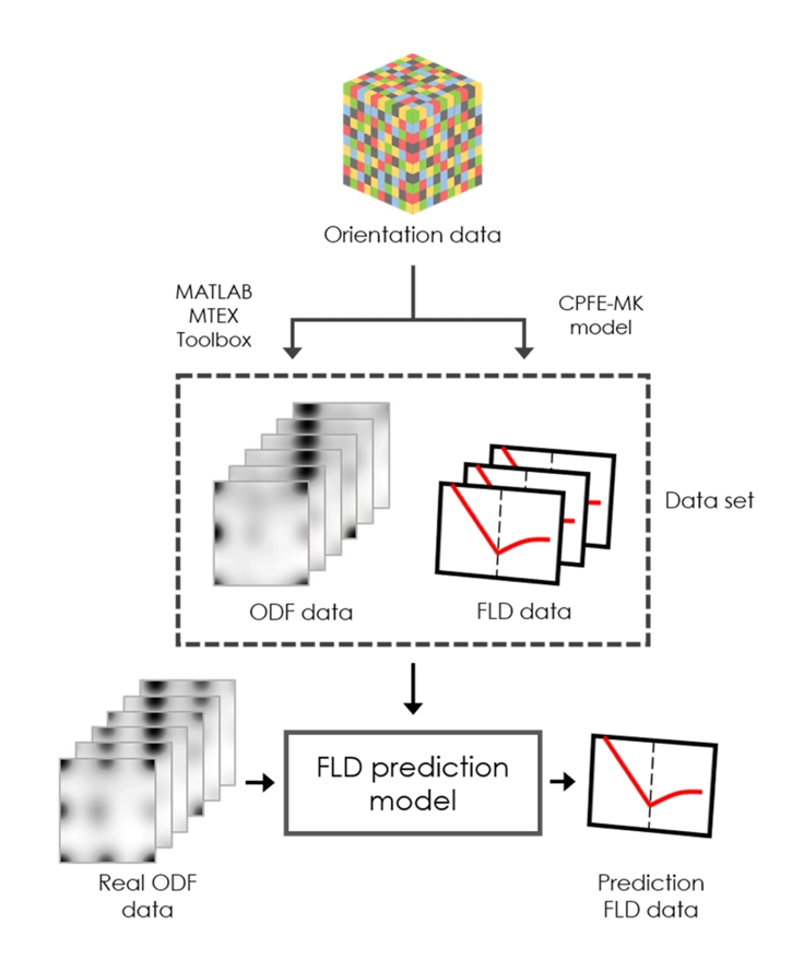 관심도가 높아지고 있다[13,14]. 특히, 결정립 수준의 수치해석에서 얻어지는 대량의 복잡한 데이터를 학습한 머신 러닝 모델이 재료의 FLD 등 기계적 특성을 예측하는 데 있어서